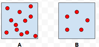 Which box is less dense?