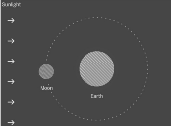 El sol ilumina (ilumina) la mitad de la luna que está frente a él mientras que la otra mitad permanece oscura