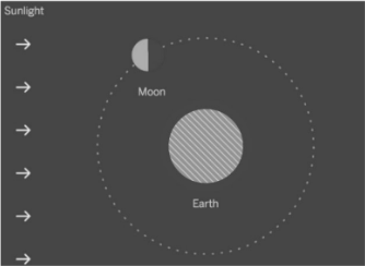The sun illuminates (lights up) the half of the moon that is facing it while the other half remains dark. /