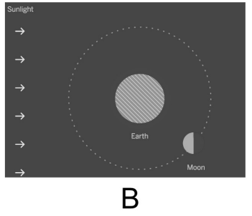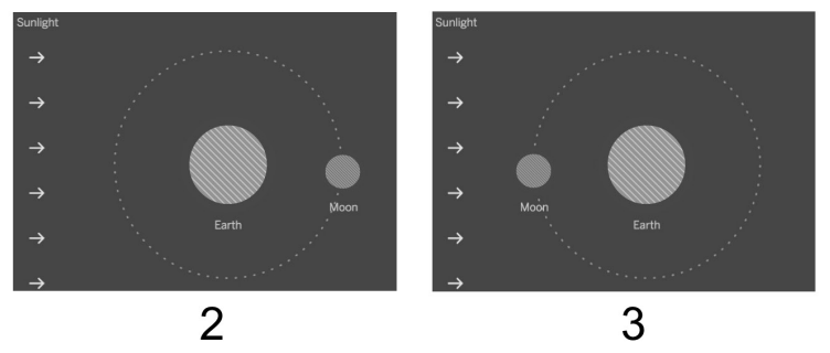 ¿Cuál de las siguientes vistas superiores podría estar completamente oscura la mitad de la Luna que mira hacia la Tierra?