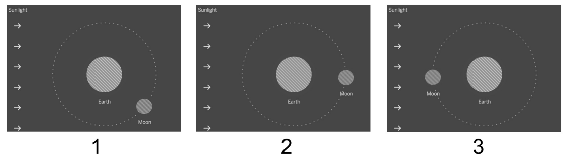 Which of the following top views could the half of the Moon that faces Earth ever be completely dark?