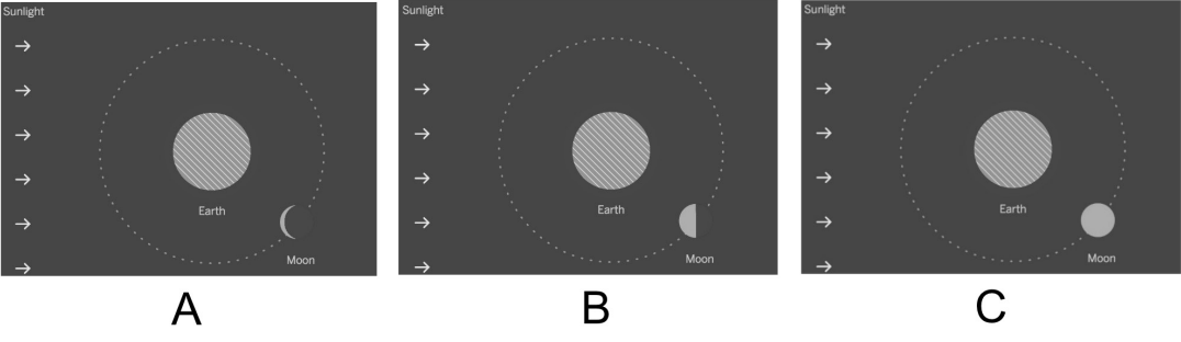 ¿Cuál de los siguientes es el diagrama correcto de cómo se ve la luna desde arriba (vista superior)?