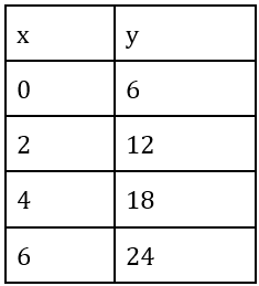 19) Complete the table of values below so that it makes a line that is parallel to y = 3x + 3