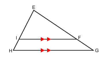 Angle E is congruent to itself. We can use corresponding angles to find the second pair of congruent angles.