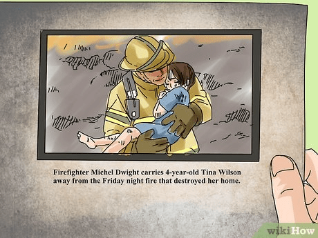 How does the caption of the illustration help you understand the impact of the firefighter on the girl?