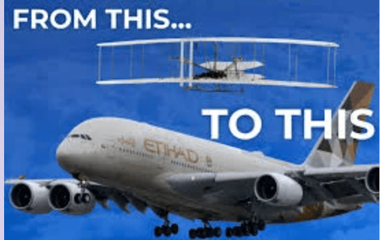 A. It shows that airplanes have been around for 100 years.