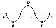 Look at the transverse wave below. The wavelength of this wave is equal to the distance between which two points?