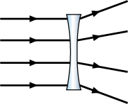 The lens shown in the diagram causes the light rays entering the lens to spread out.