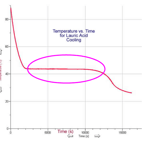 The plateau represents the phase change. The longer the plateau, the more time/energy needed for the phase change to occur.