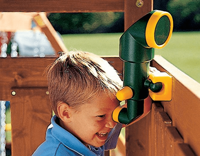 In this image, a boy is looking through a periscope on a playground. As light enters the top lens of the periscope, a mirror at the top and the bottom allow the boy to see what is in front of him. This is an example of this scientific concept