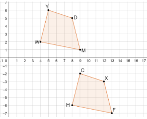 Write the rule for a translation of 4 units right and 5 units down