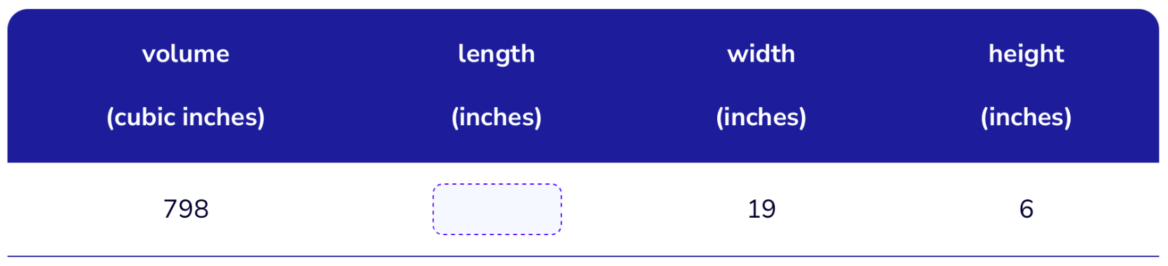 A toolbox is shaped like a rectangular prism. The length is 14 inches and the height is 7 inches. If the volume of the toolbox is 1,176 cubic inches, what is its width?