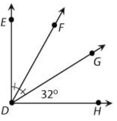 In this diagram, ∠EDH is a right angle, and ∠EDF ≅ ∠FDG . What is the measure of ∠EDF ?