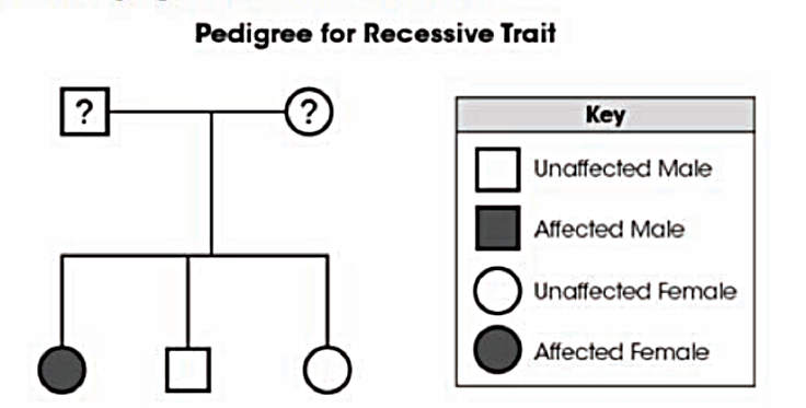 Consider the pedigree below showing the inheritance of a recessive trait.  Hint: remember what the empty and full boxes mean.