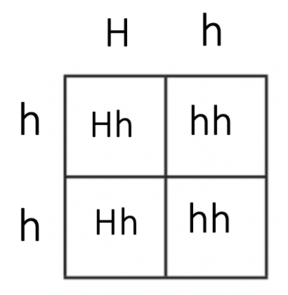 If H represents the dominant allele and h represents the recessive allele, what are the genotypes of the parents (with "?") shown in the pedigree?