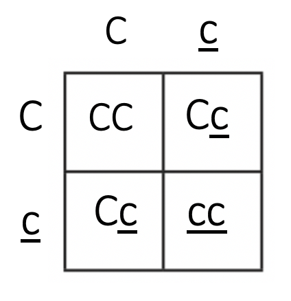 Cystic Fibrosis is a recessive autosomal disorder of the lungs.  If two healthy parents married, but they knew they were both carriers (Cc) for the disorder, what is the probability that their children may get cystic fibrosis?