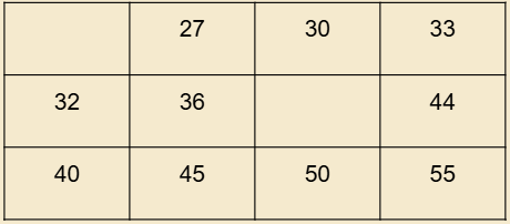 Part of a multiplication table is shown.