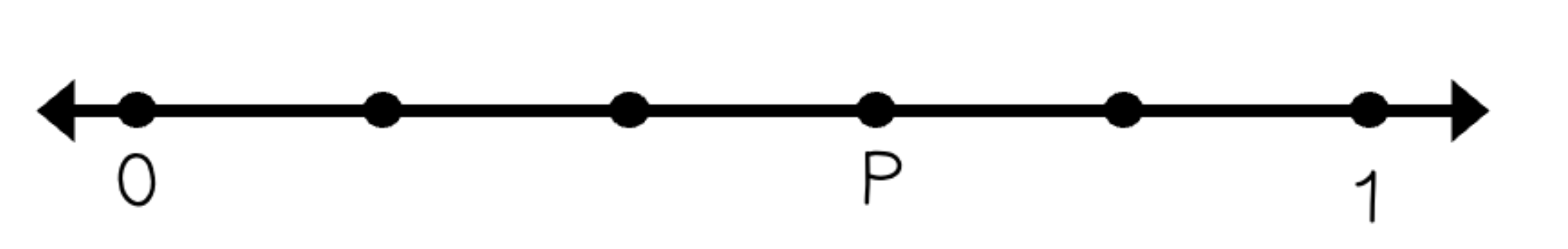 What fraction is represented by the letter P on the number line?