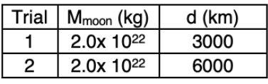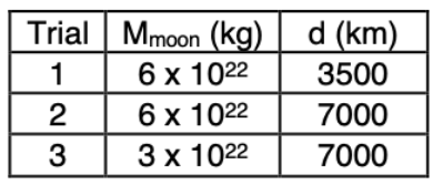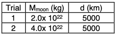 State how the gravitational force would be affected in trial 2, when the mass changes.