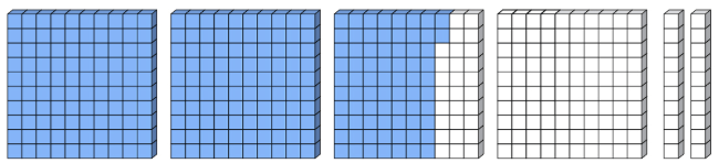 The base ten blocks represent a subtraction equation. The shaded portion represents the value that was removed.