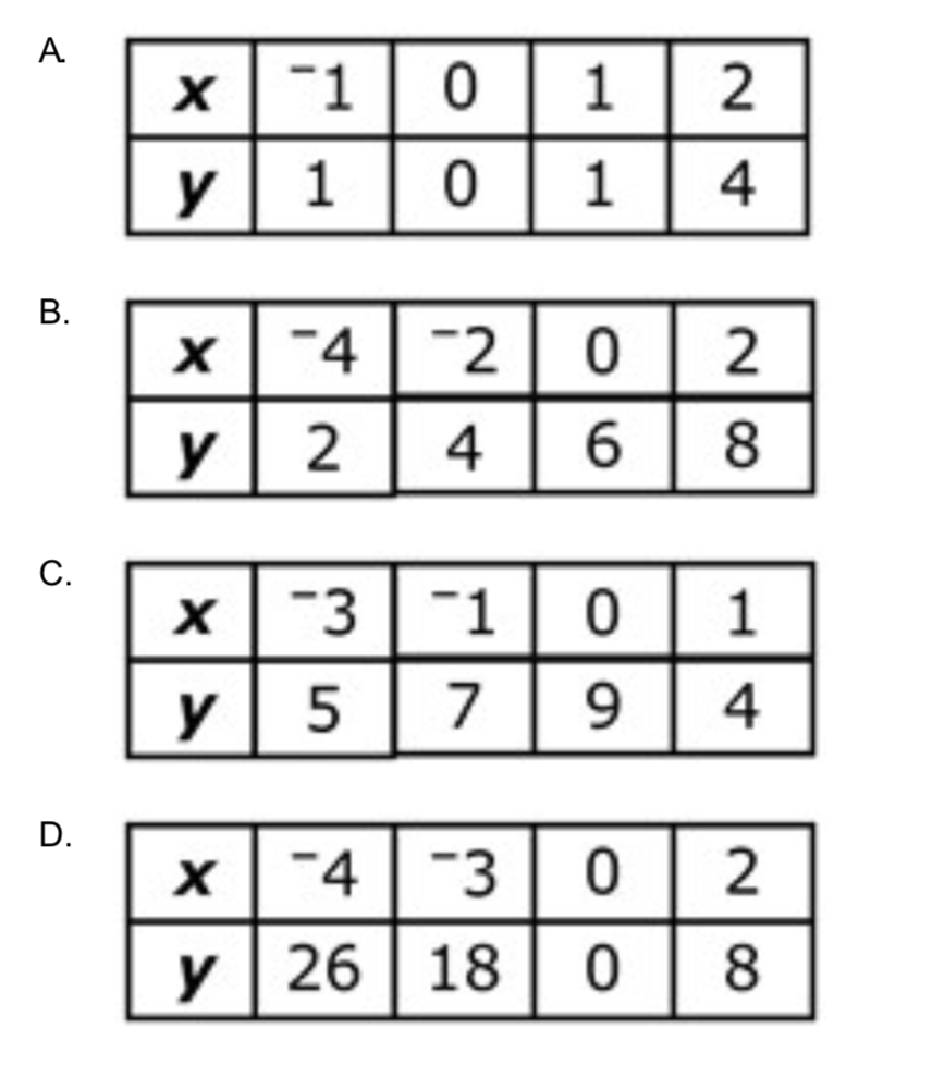 Which one of the tables below represents a linear function?