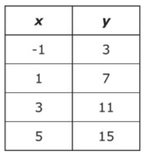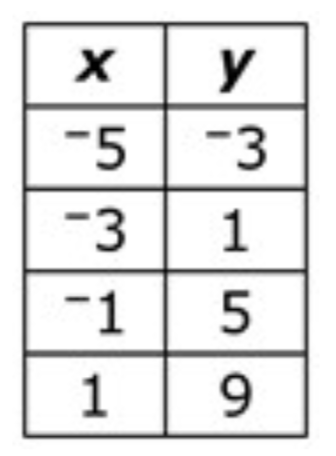 Write an equation that explains the relationship between the x and y in the table below:
