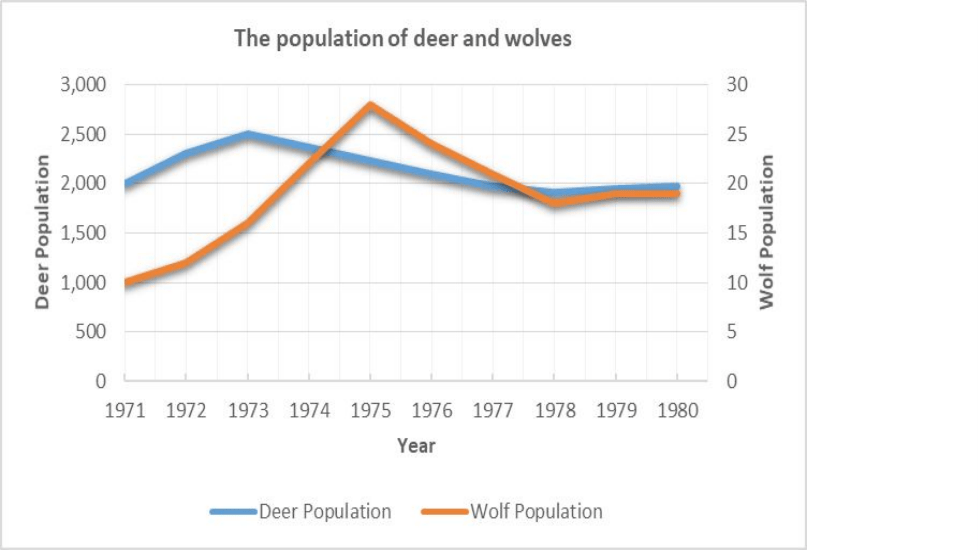 Between 1972 and 1975, did the wolf population increase or decrease?