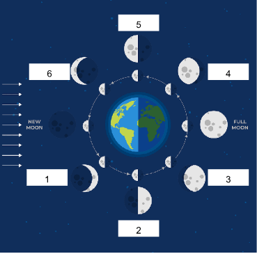 What Moon phase is it at 2, 4 and, 6?