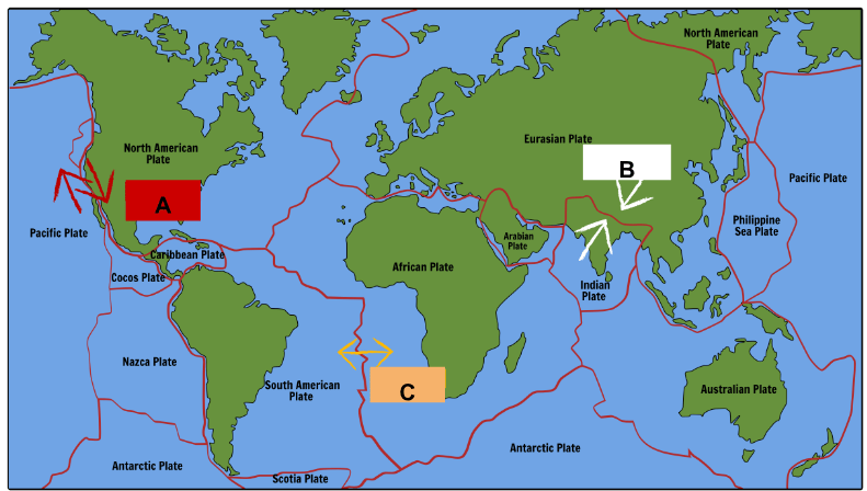 R = Mountain, volcanoes, and earthquakes form along plate boundaries where 1 tectonic plate meets another.