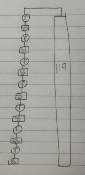 Write an equation for this hanger diagram, then solve for the variable. (there's an extra step this time, notice what's not part of the 3 groups.