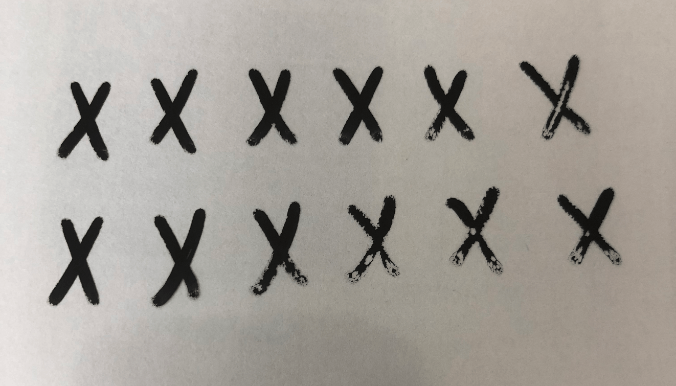 Draw a pattern of X's to show the multiplication of 2 and 6