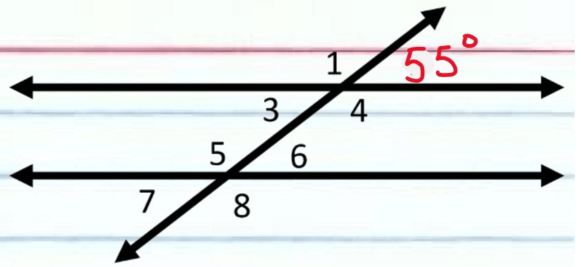 If Angle 2 = 55 degrees, what are the measurements angles 1, 3, and 4?