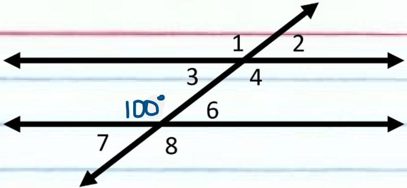 If angle 5 = 120 degrees, what are Angles 6, 7 and 8 equal to?