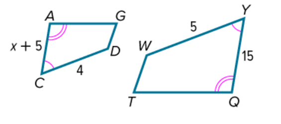 The polygons are similar. What is the value of x.
