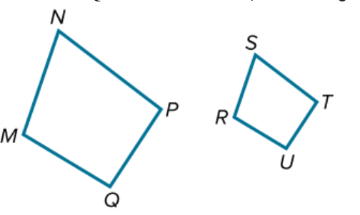 Quadrilateral MNPQ~RSTU. Which angle is congruent to M and write one ratio that is proportional to ST/NP?
