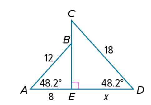The two triangles are similar. Triangle ABC is similar to triangle DBE. What is the length of AC?