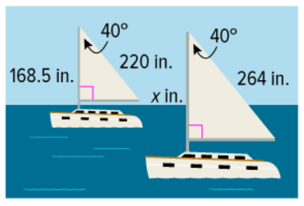 These two sailboats are similar. What is the value of x? Round your answer to the nearest tenth if necessary.