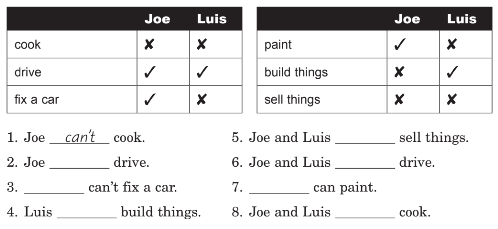 Peter was a server in 2018. Now he is a cashier. He can do many things. He ____ use a cash register. He ____ use a computer, too. But Peter has one problem. He _____ speak English well. He is going to school in the evenings to learn English.
