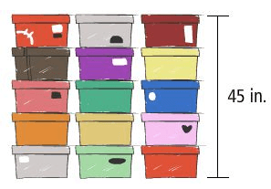 Each shoebox is the same height.  The height of the display depends upon the number of shoeboxes in one column.  What is the constant of proportionality for the situation?