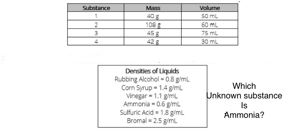 All of these substances have a volume of 2mL. Which one has a mass of about 41 g?