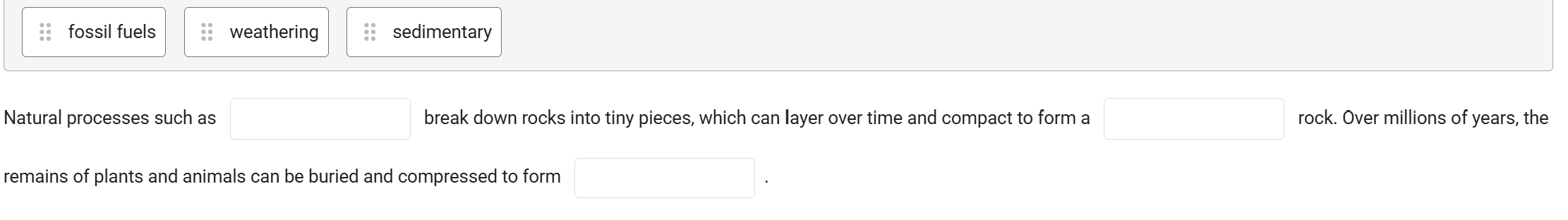 Weathering, sedimentary rocks, fossil fuels