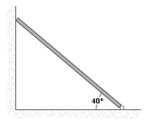A uniform beam having a mass of 60 kg and a length of 2.8 m is held in place at its lower end by a pin. Its upper end leans against a vertical frictionless wall as shown in the figure. What is the magnitude of the force the pin exerts on the beam?