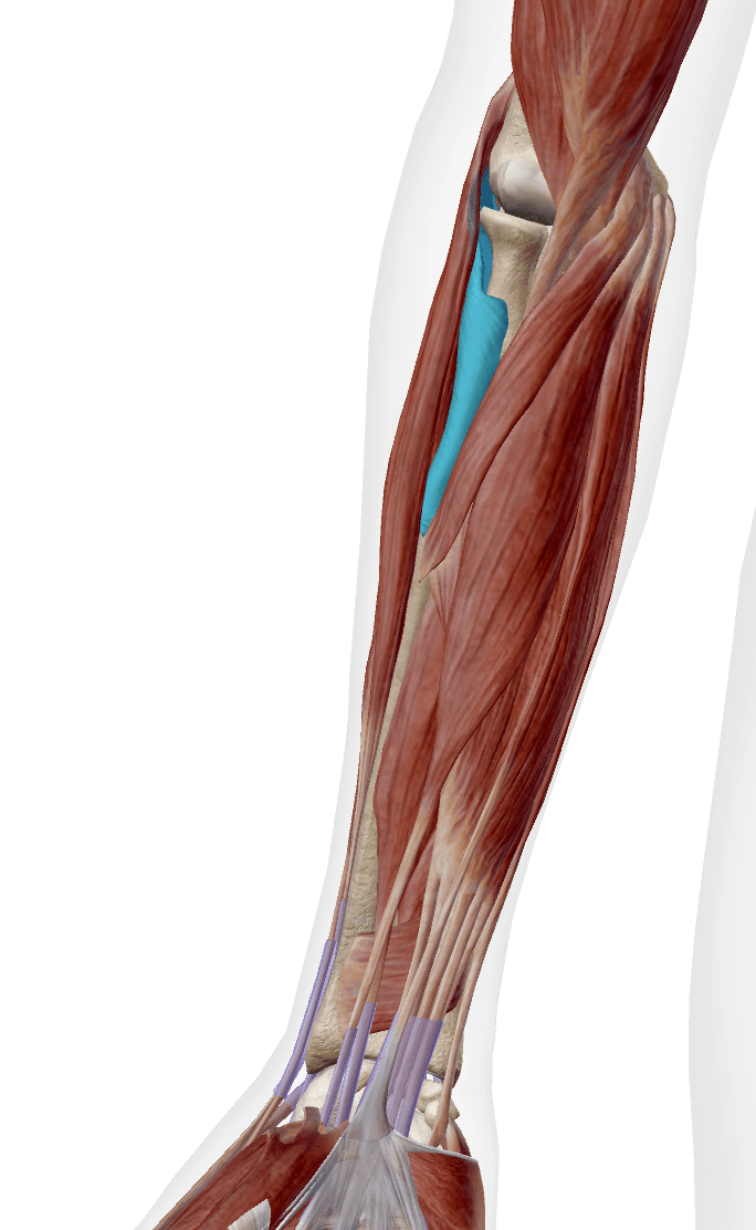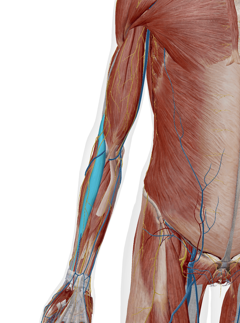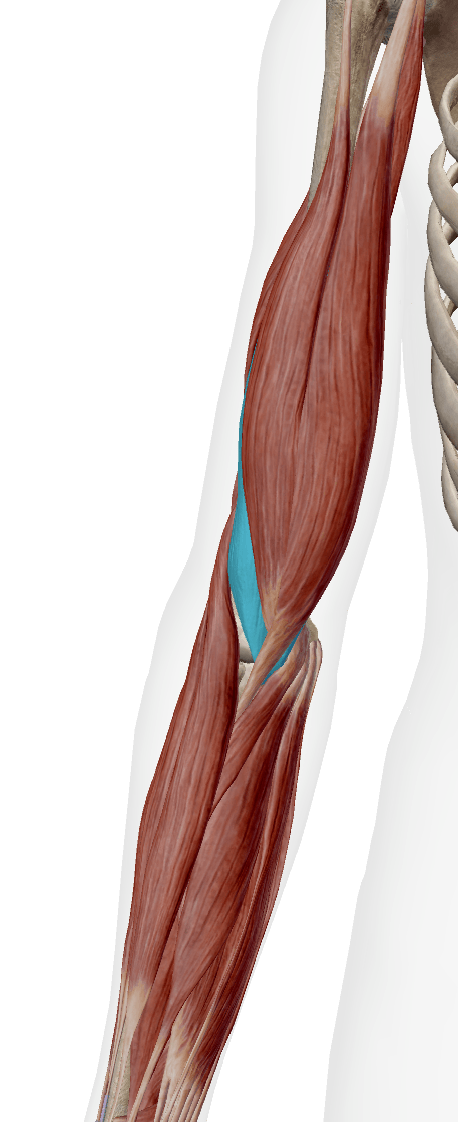 This muscle is deep in the forearm and wraps around the radius. It moves the forearm turns the palm up.