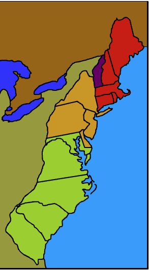 What American Colonies are shaded in red? What are some defining characteristics of these colonies?