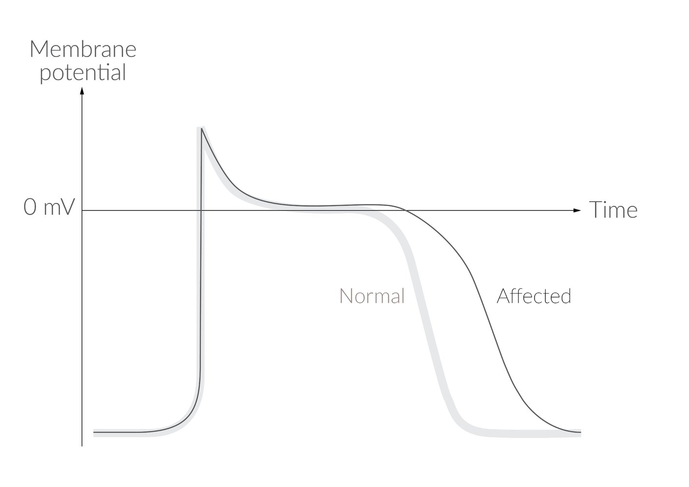A 71-year-old woman comes to the physician because of dizziness and intermittent episodes of heart palpitations for 5 days. During this time, she has also had one episode of syncope. An ECG shows absence of P waves and irregular RR intervals. Treatment with an antiarrhythmic drug is initiated. The effect of the drug on the cardiac action potential is shown. Which of the following cardiac ion channels is most likely targeted by this drug?