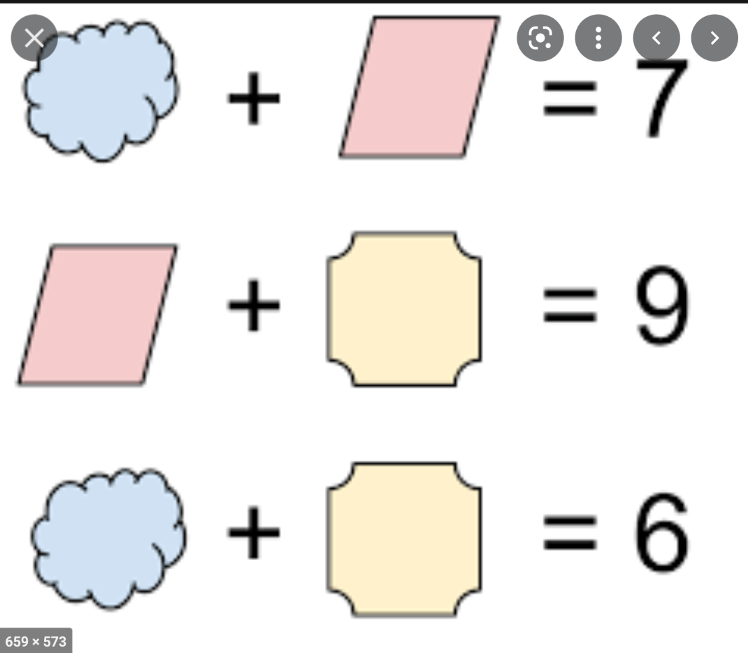 Vad är: blå (moln) = 2, rosa (paralellogram) = 5, gul (etikett) = 4?