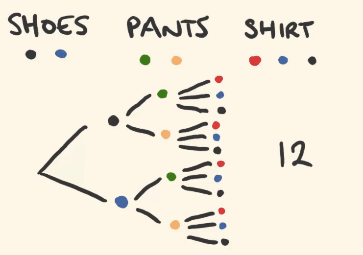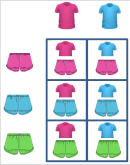 Shadi is picking an outfit. She made this chart to represent the different outcomes. What is the probability of wearing green pants?