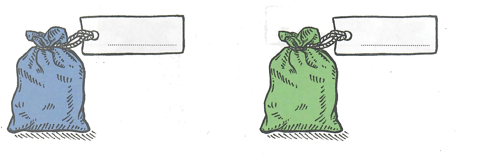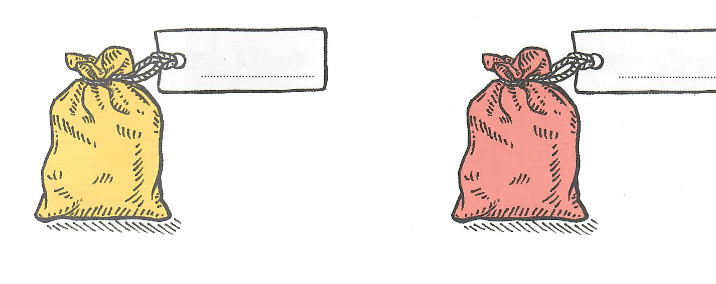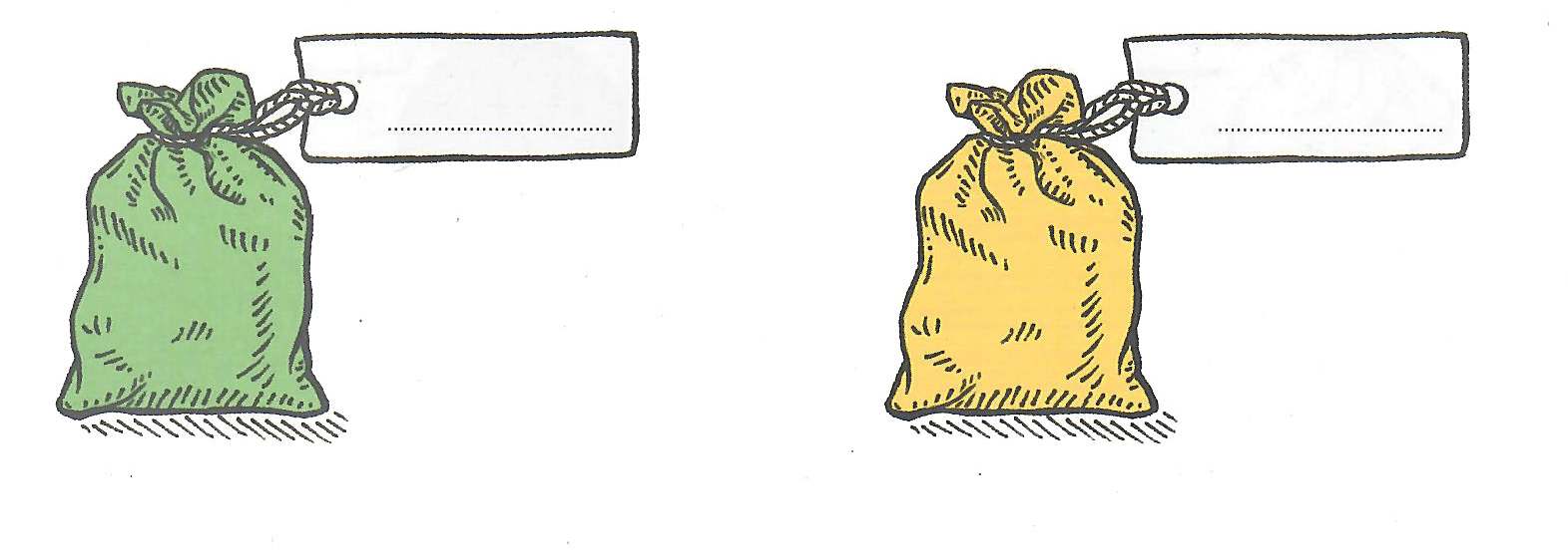 Im gelben Sack sind 15 Kugeln. Im roten Sack sind es 10 Kugeln weniger. Wie viele Kugeln sind in den beiden Säcken zusammen?