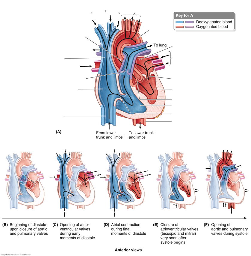 Left Atrium: collects oxygenated blood from the lungs and passes it to the left ventricle