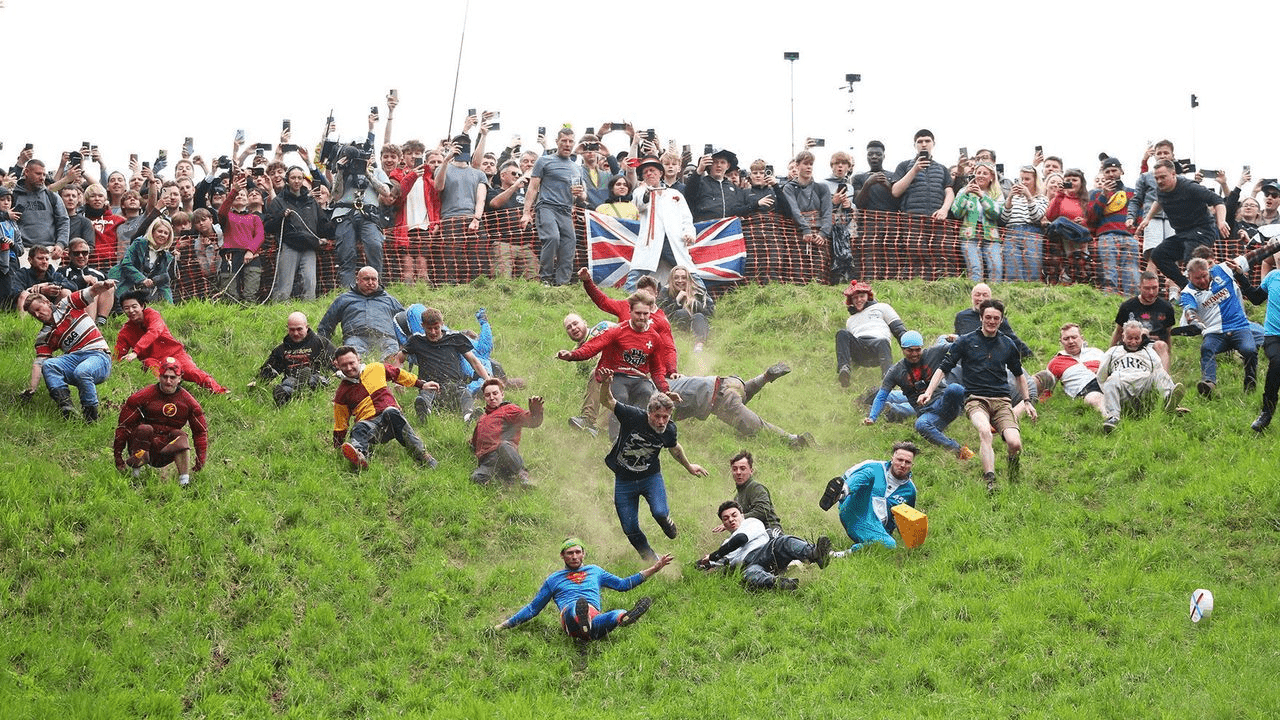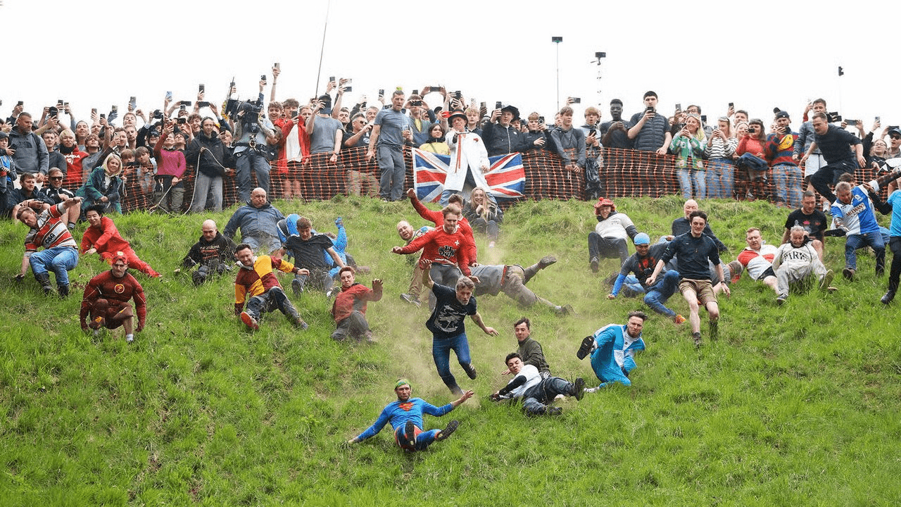 In this British tradition, people run down a very steep hill. Who or what are they chasing?